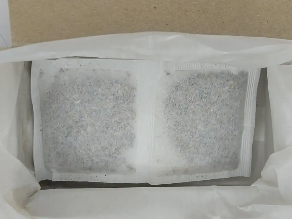 ティーバッグは2袋繋がっており、真ん中にミシン目が入っています。