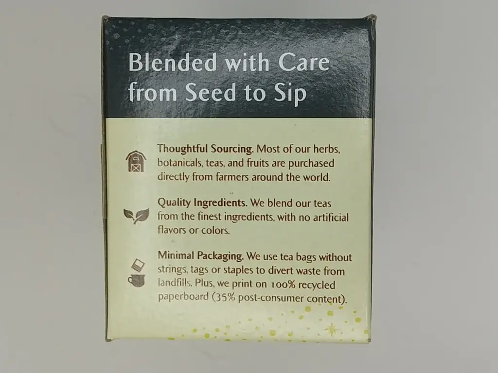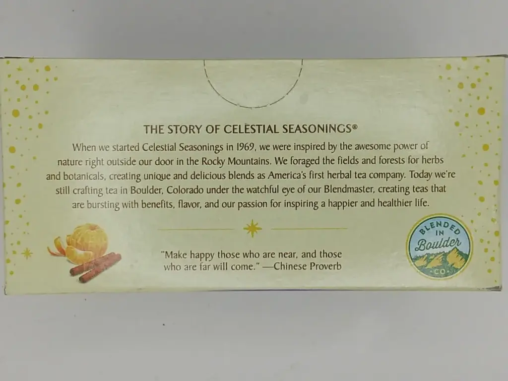 底面部分にはセレッシャルシーズニング社の設立までのストーリーと、中国のことわざが載っています。