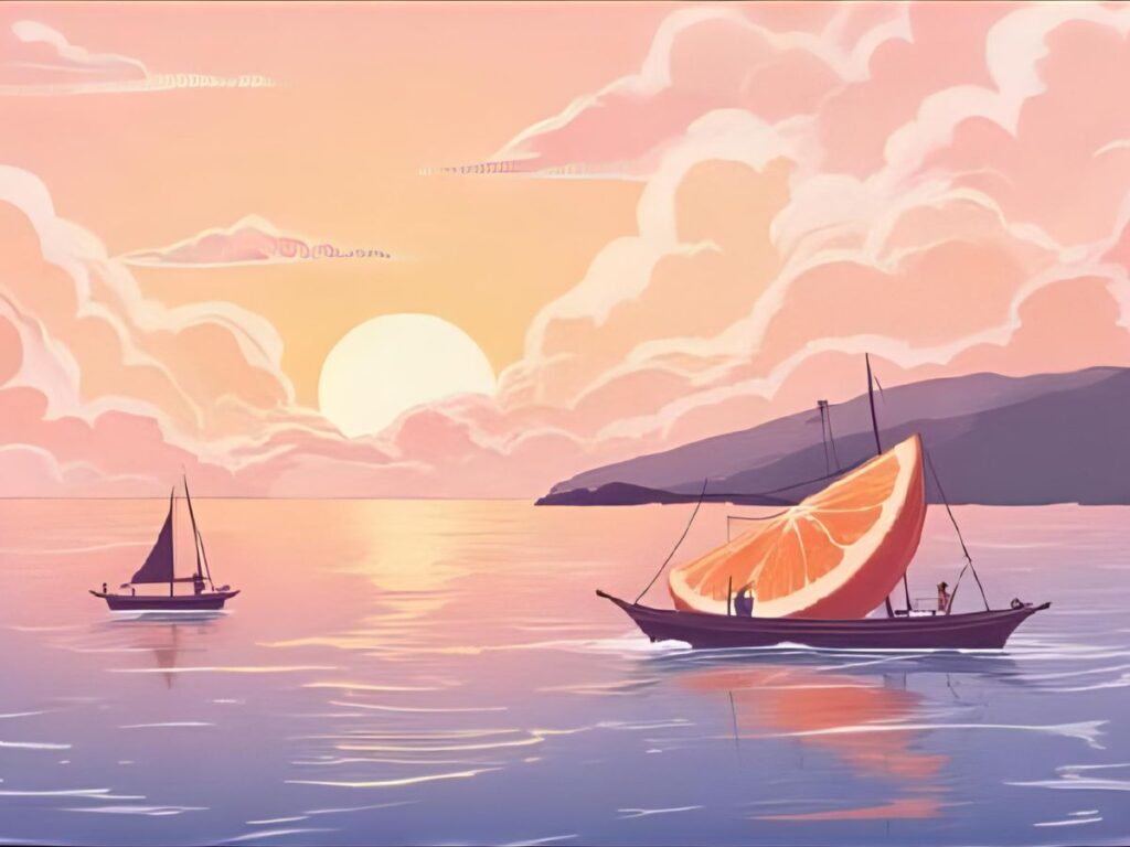 マンダリンオレンジスパイスのパッケージには、果肉が船になっていて、風を受けて走る帆船。