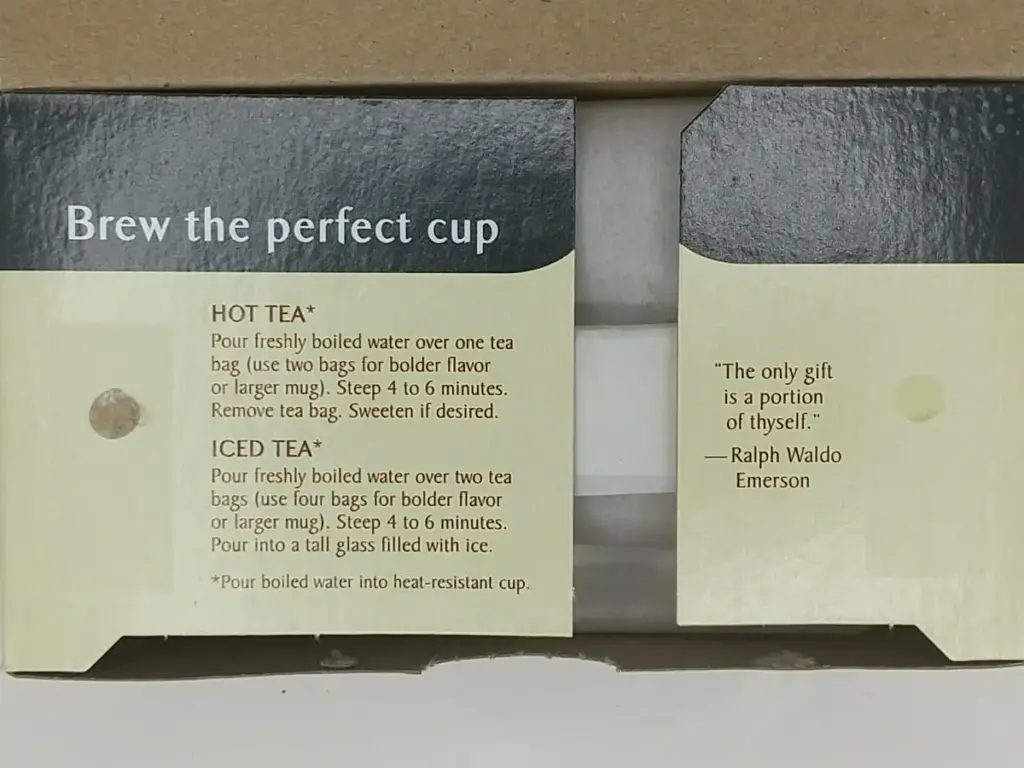 取り出し口を開けると中の蓋に、Brew the perfect cup(完璧な一杯を淹れる)、ラルフワルドエマーソンの名言が載っています。