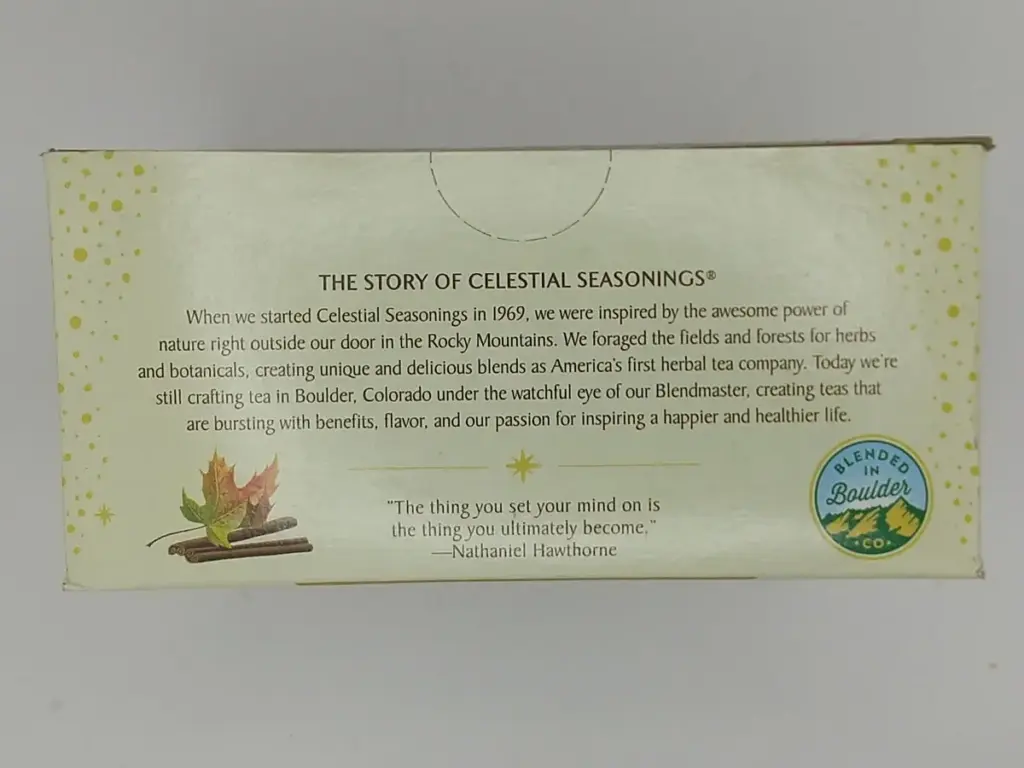 底の部分には、セレッシャルシーズニングが設立されるまでのストーリー、そしてナサニエル・ホーソーンの名言が載っています。